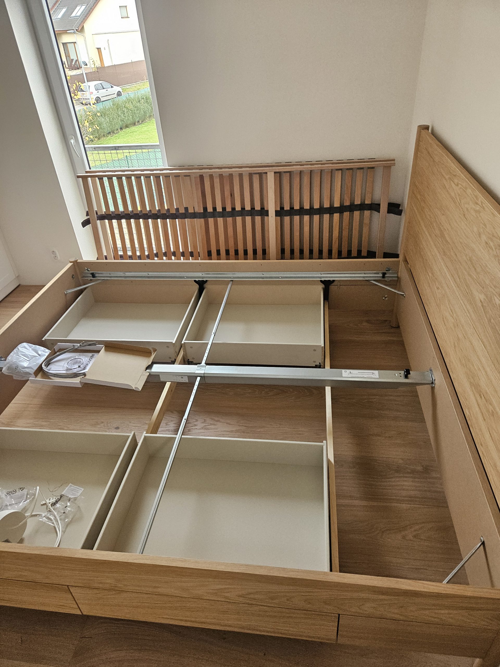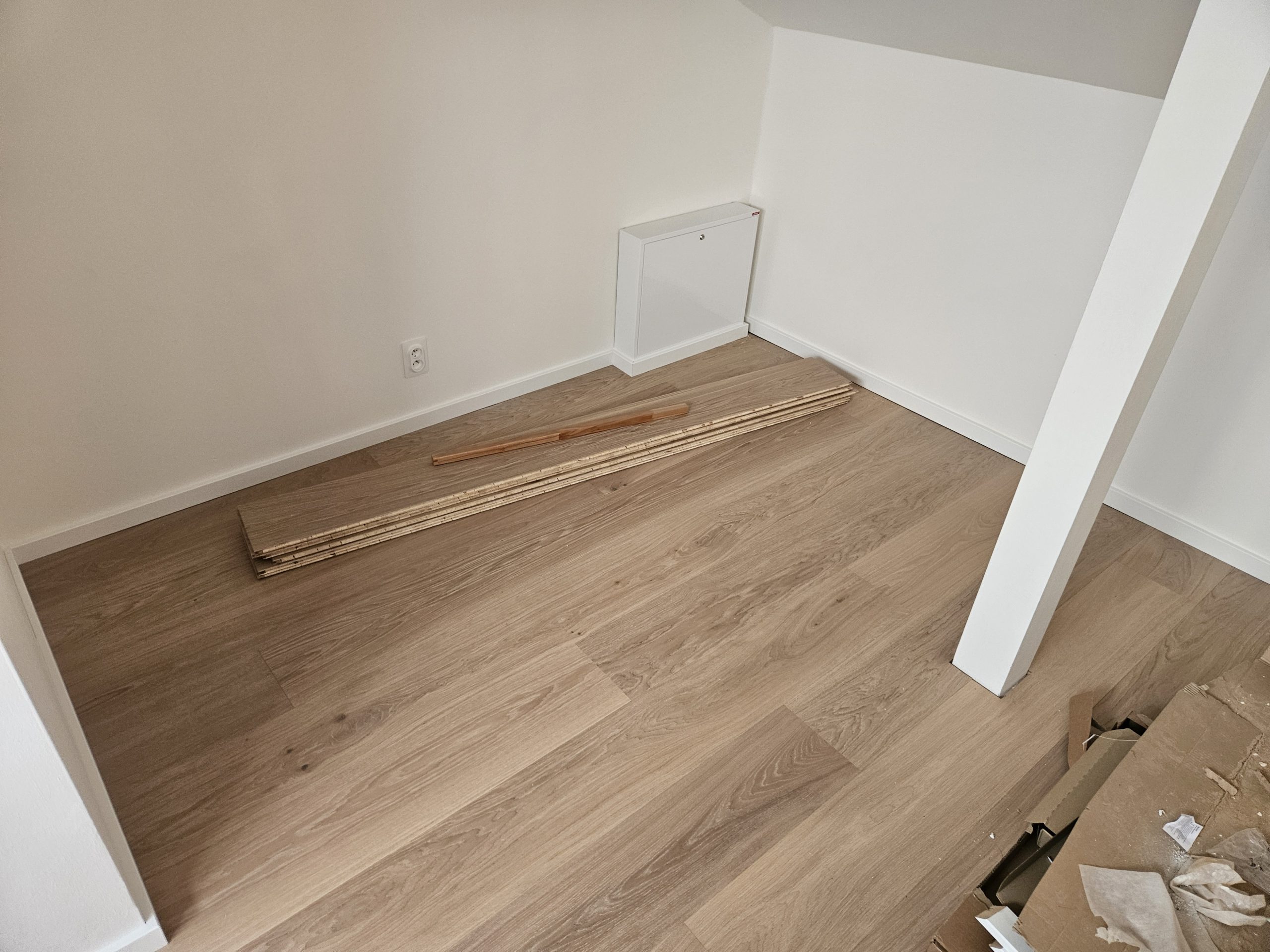 Montáž podlahových lišt nebo silikon místo prahu tam kde jsou přechody mezi místnostmi. Chybělo složit postel a nainstalovat garnýže. S kolegou jsme to vše vyřešili a rodina se mohla obratem nastěhovat. Také jsme připojili lednici na vodu a zapojili pár světel.