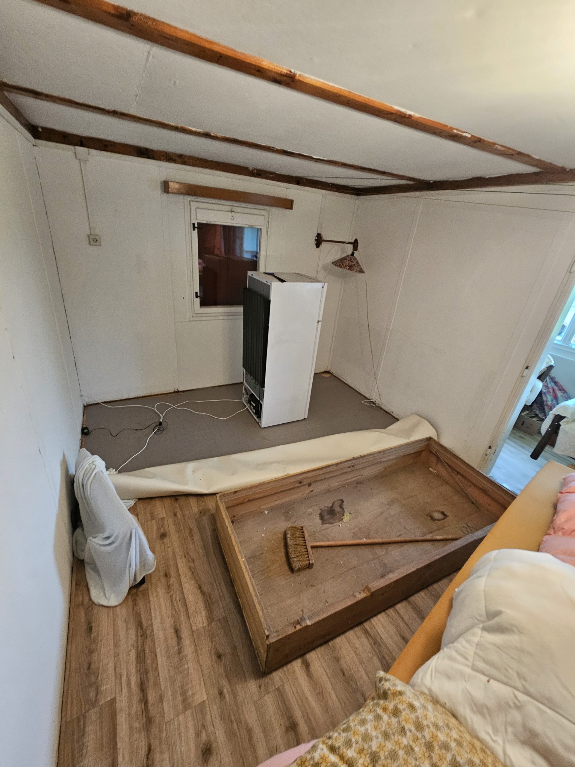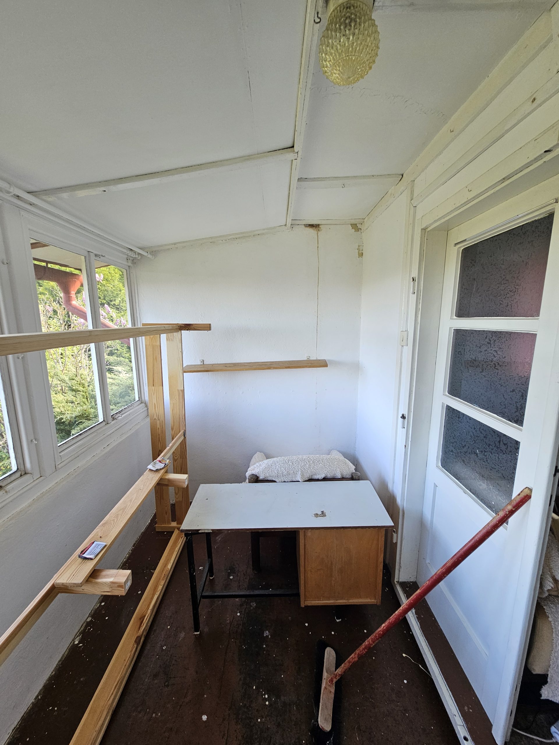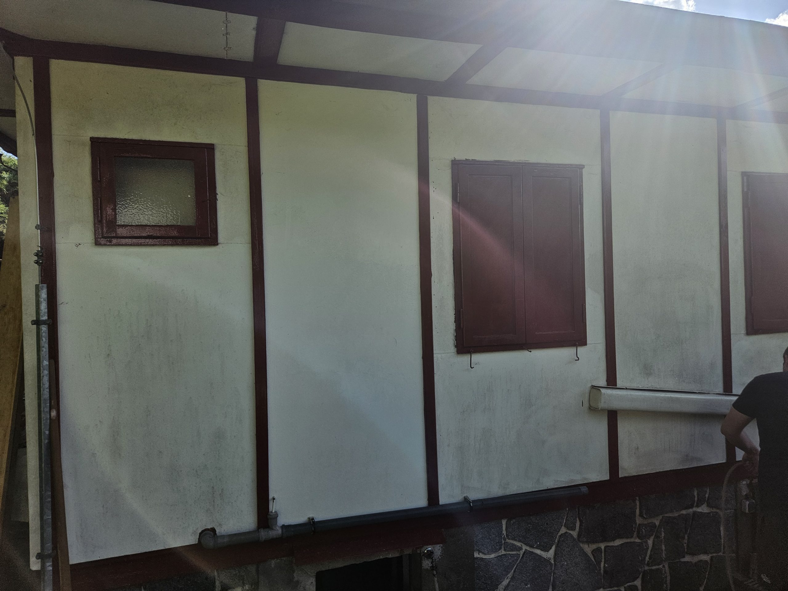 Se zákazníkem jsme prošli chatu a její okolí a postupně vymysleli a sepsali práce které budou potřeba udělat. Oprava omítek a fasády, přetření dřevěných prken a okenic, natření studny, rozšíření terasy, oprava zdí a vybílení, pokládka lina, sestavení nového nábytku a spousta dalších oprav včetně výměny prasklé kachličky nebo vyřešení odvodu vody z odtokového kanálku.